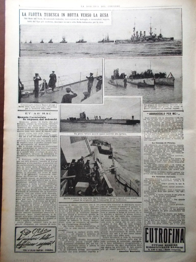La Domenica del Corriere 8 Dicembre 1918 WW1 Resa Tedeschi Rovereto Alsazia Inn