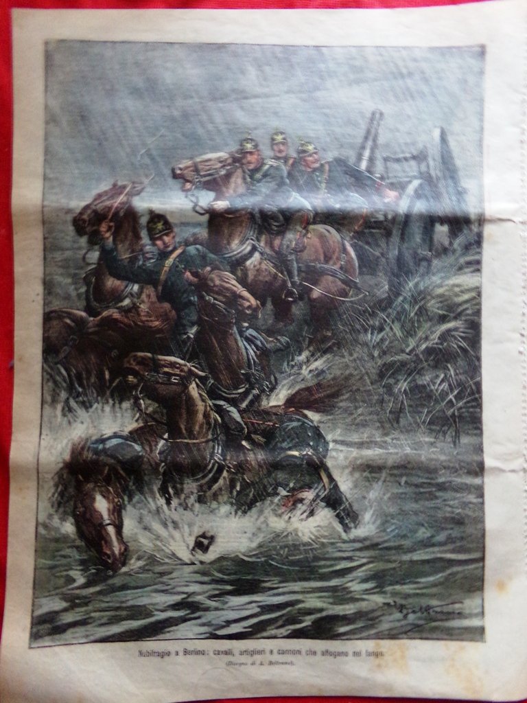 Nubifragio a Berlino: cavalli, artiglieri e cannoni che affogano nel fango (Achille Beltrame)