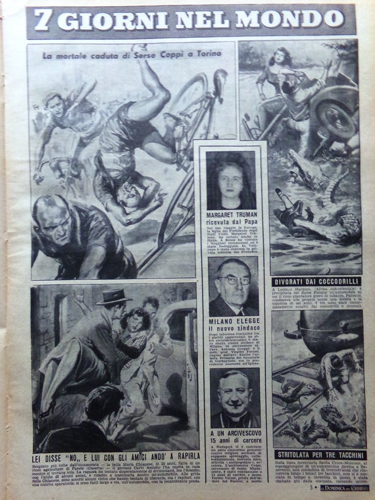 La Domenica del Corriere 8 Luglio 1951 Serse Coppi Verdi Rizzo Lupino Franchetti