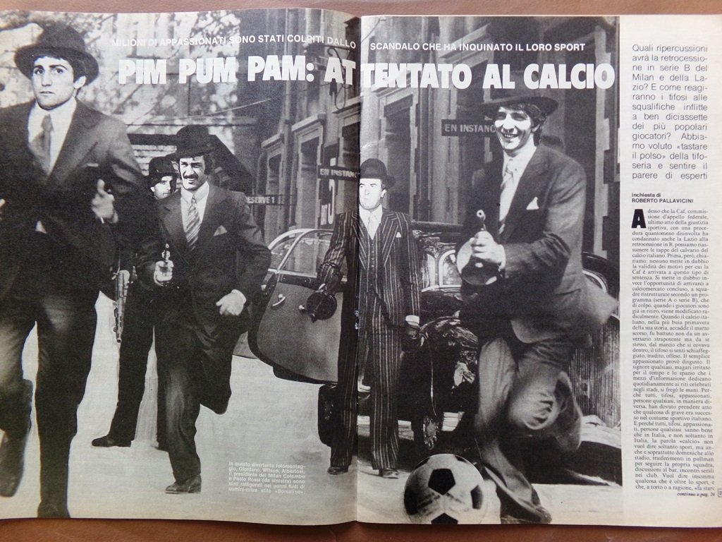 Pim pum pam: attentato al calcio. Giordano, Albertosi, Colombo e Paolo Rossi. Milan e Lazio retrocesse in serie B.