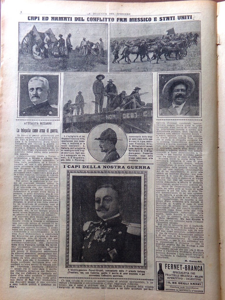 La Domenica del Corriere 9 Luglio 1916 WW1 Prigionieri Messico Telepatia Verdun
