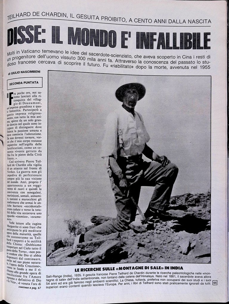 Il centenario di Teilhard de Chardin - Disse: «Il mondo è infallibile»