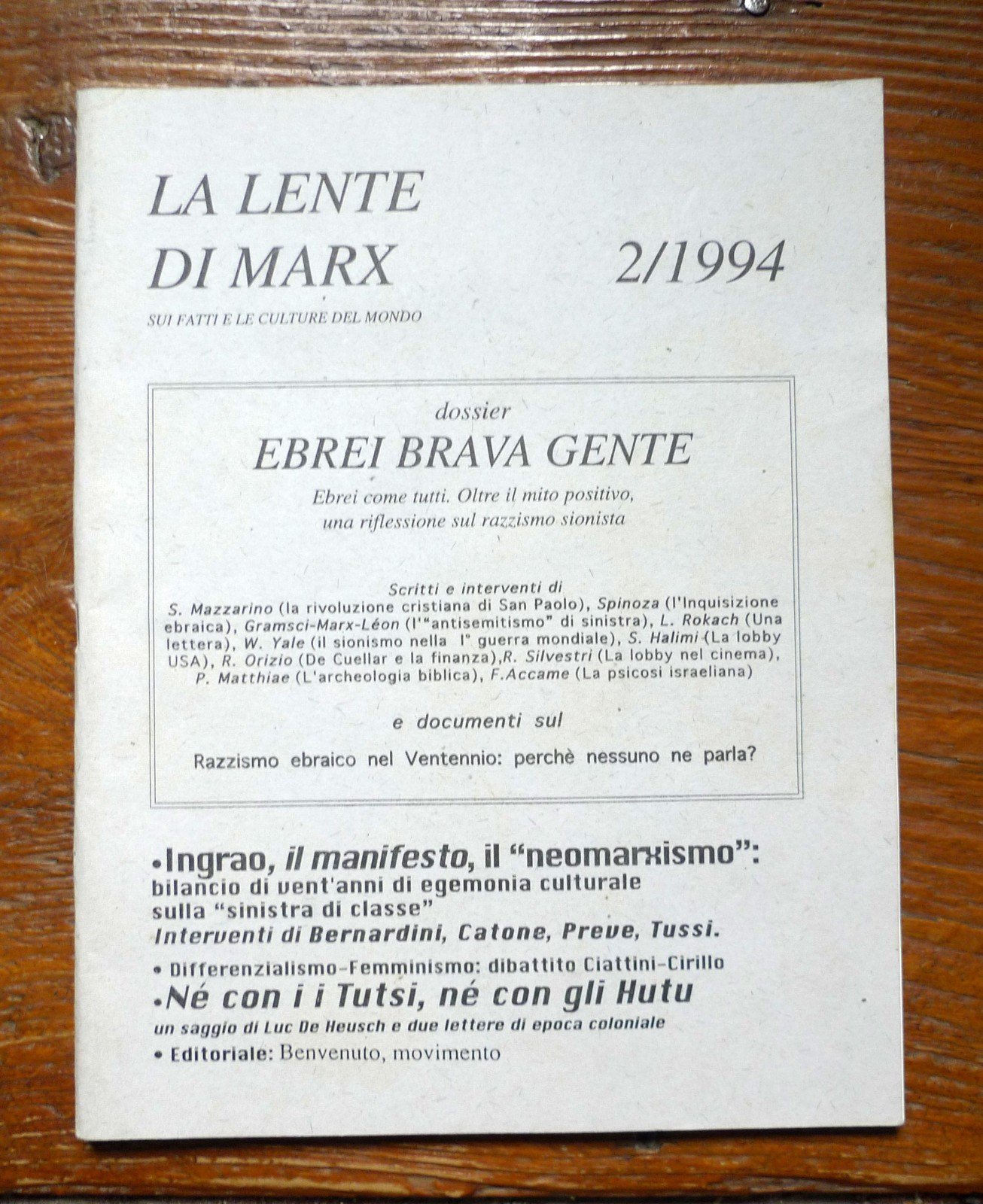 LA LENTE DI MARX 2/1994[dossier EBREI BRAVA GENTE,razzismo sionista,fascismo