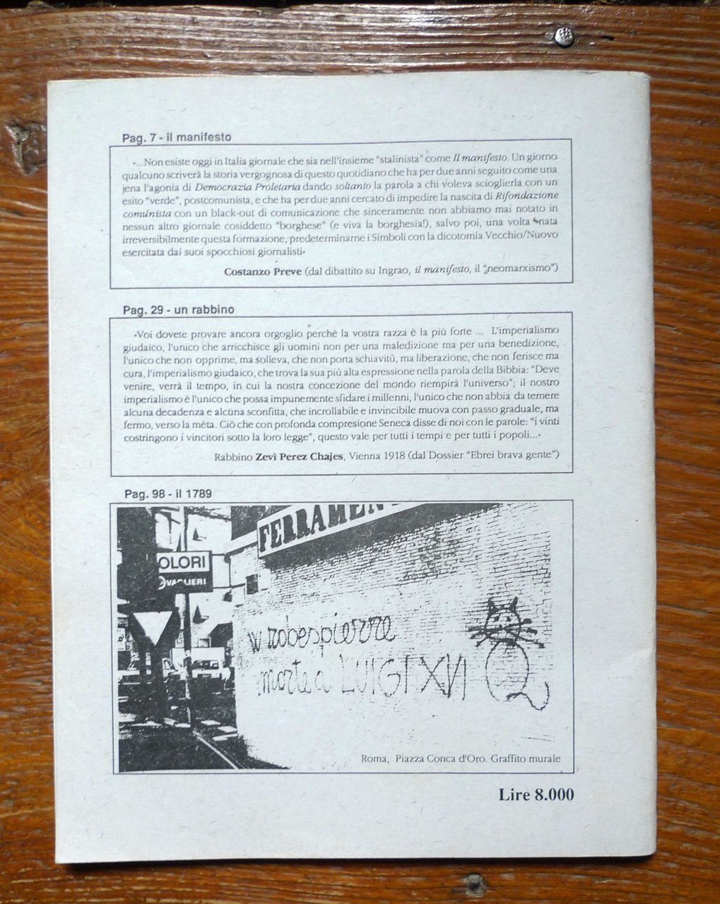 LA LENTE DI MARX 2/1994Sui fatti e le culture del mondo.Direttore responsabile: Claudio Moffa.Roma 1994,brossura, rilegatura con punto metallico,25,5x20 cm., pp.100,contiene il dossier: EBREI BRAVA GENTE,una riflessione sul razzismo sionista,e documenti sul razzismo ebraico nel Ventennio,peso: g.300cod.10045CONDIZIONI DELLA RIVISTA: come nuova
