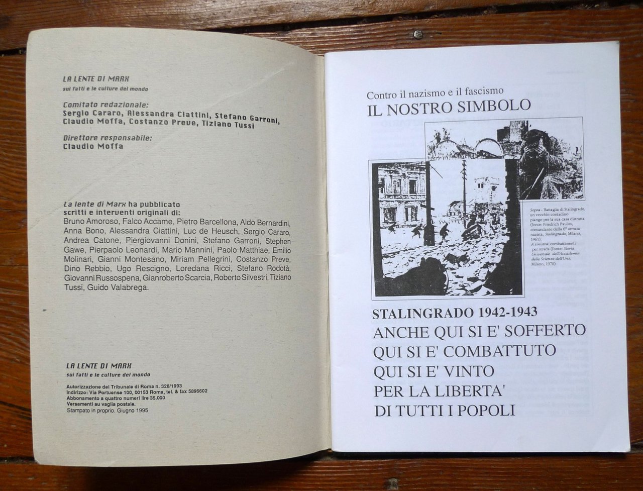 LA LENTE DI MARX 3/1995.Sui fatti e le culture del mondo.Direttore responsabile: Claudio Moffa.Roma 1995,brossura, rilegatura con punto metallico,28,5x20,5 cm., pp.100,contiene il dossier: PIANETA SUD,I NUOVI DANNATI DELLA TERRA.Africa, Asia, America Latina dopo il crollodel "sindacato" URSS,peso: g.300cod.10046CONDIZIONI DELLA RIVISTA: come nuova