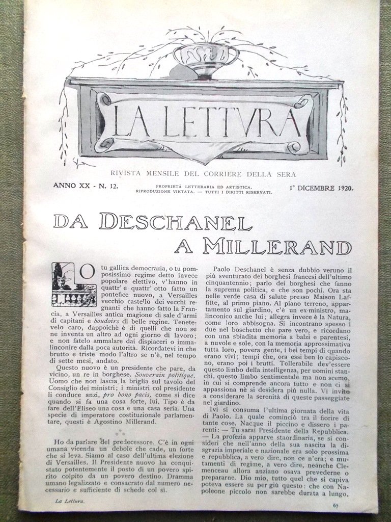 La Lettura del Dicembre 1920 Ernesto Rossi Boito Pechino Gesù Canzonetta Amleto
