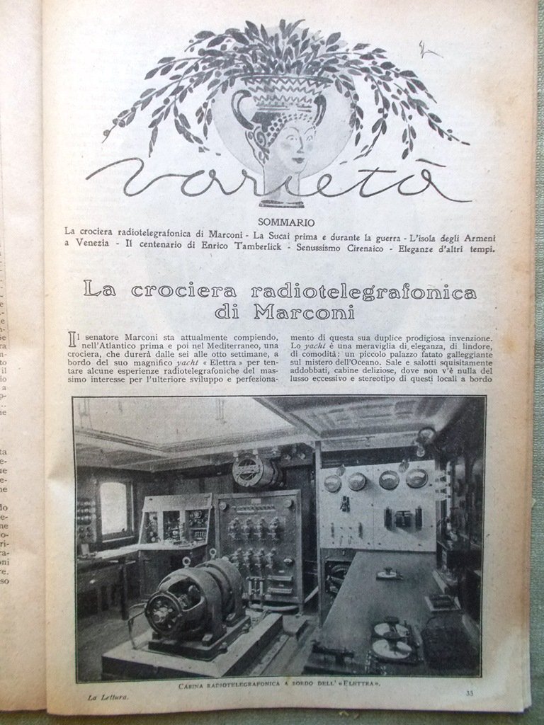 La Lettura del Giugno 1920 Giovanni Verga Palestrina Marconi Tamberlik Quintero