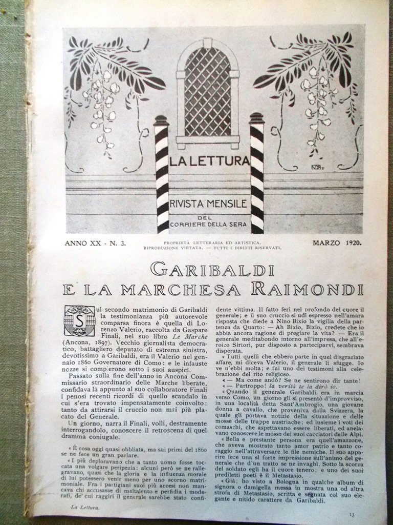 La Lettura del Marzo 1920 Offenbach Rodin Braschi Aviazione Kossuth Eliseo Pola