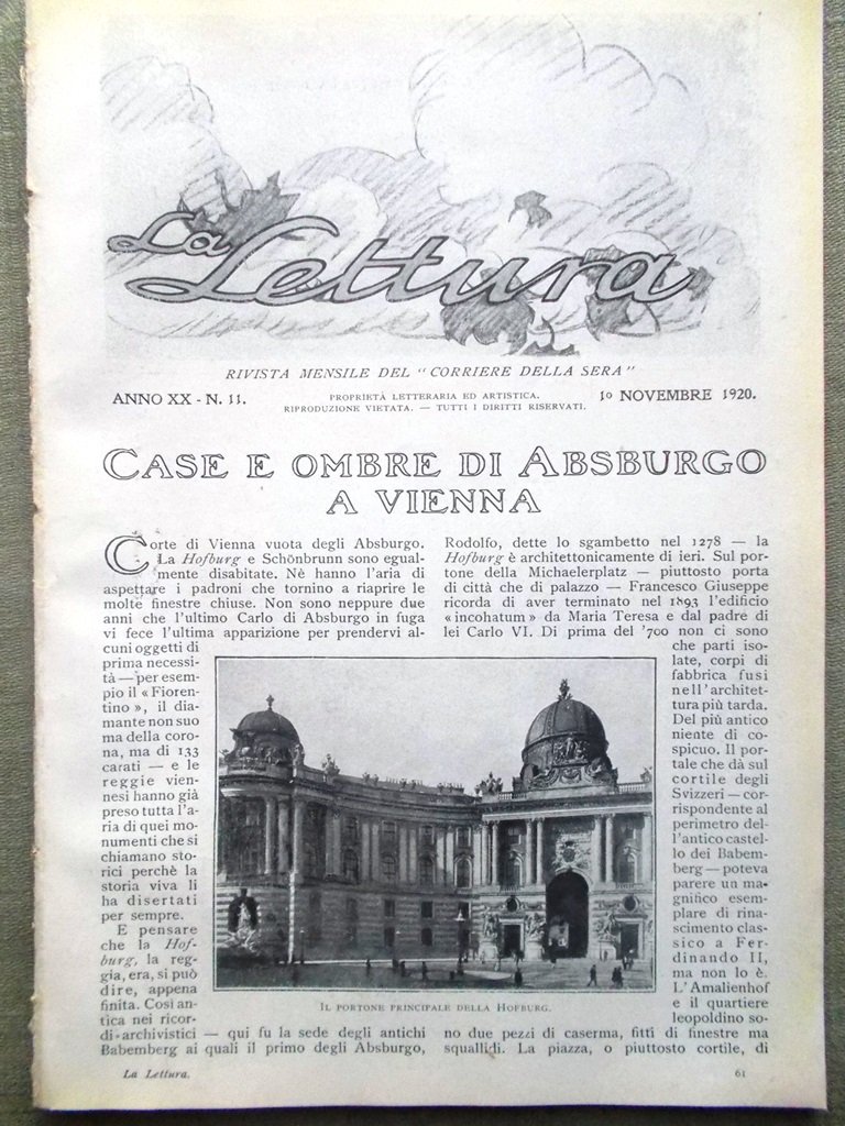 La Lettura del Novembre 1920 Absburgo Gambetta Toscanini Mosca Panizzi Zanella