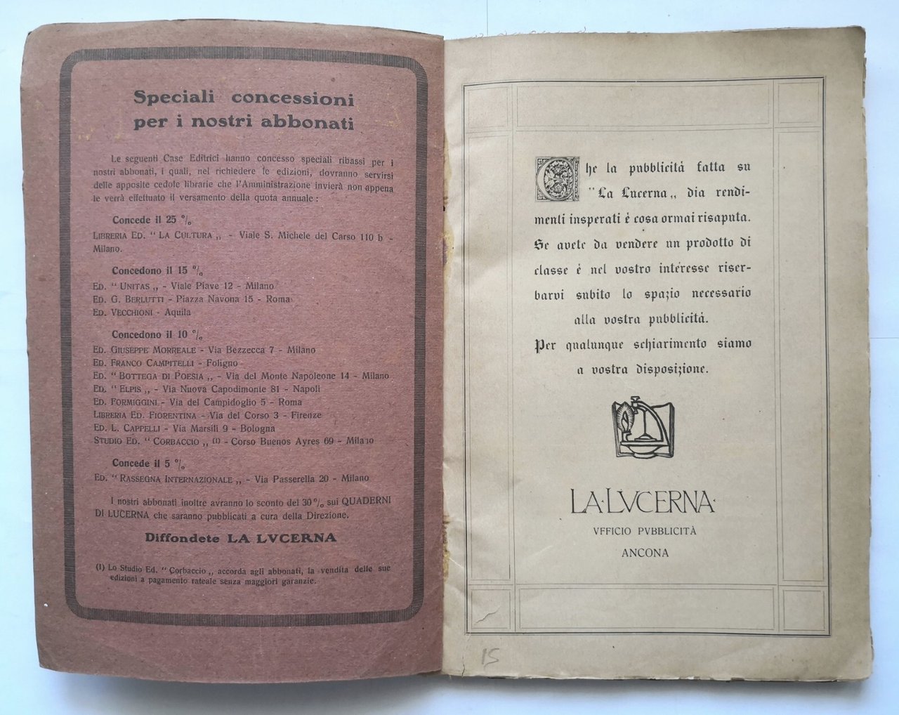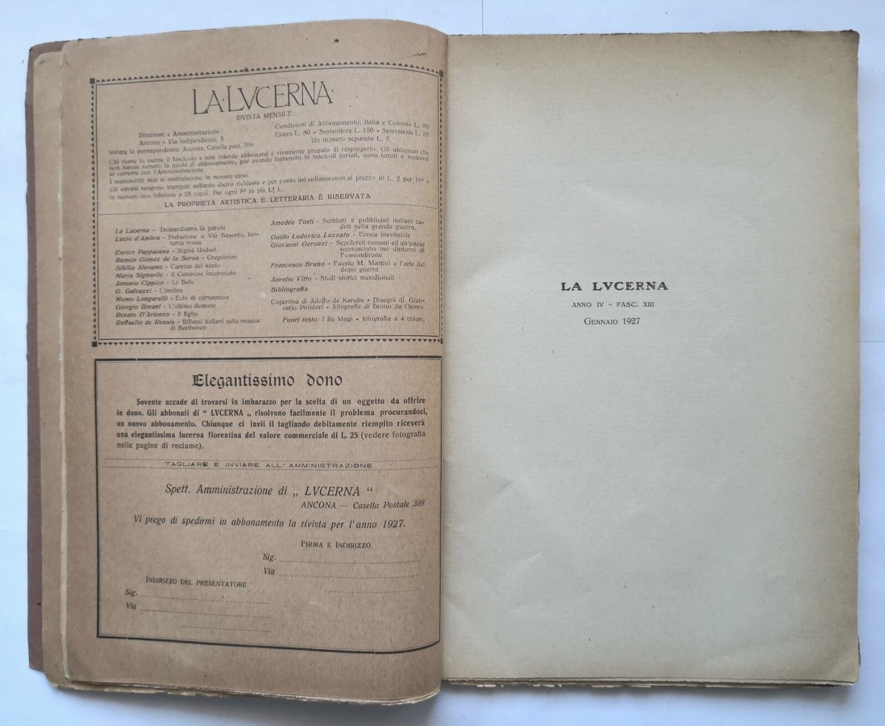 LA LUCERNA anno IV fascicolo XIII 1927 Luigi Panzini rivista mensile Ancona