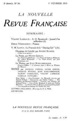 LA NOUVELLE REVUE FRANCAISE. - Revue mensuelle de littératures et de critique.