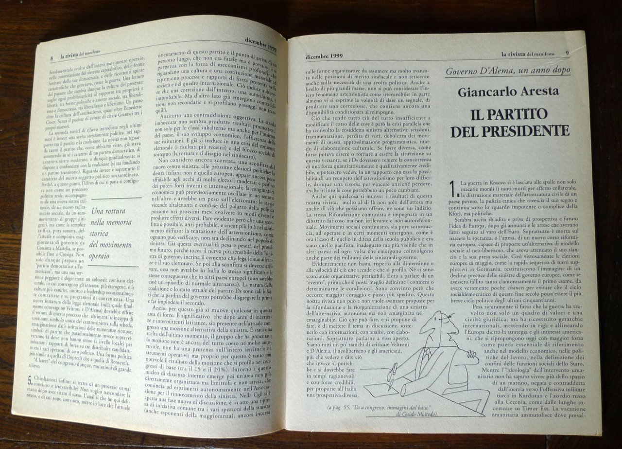 LA RIVISTA DEL MANIFESTO n.1 dic.1999[comunismo,congresso DS,guerra balcanica