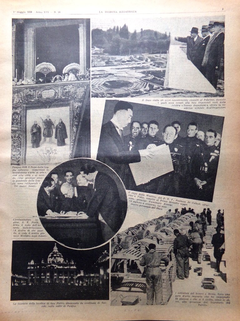 Fotografie: il Papa nella loggia vaticana, il duce visita gli scavi al Palatino, i littoriali del lavoro a Roma