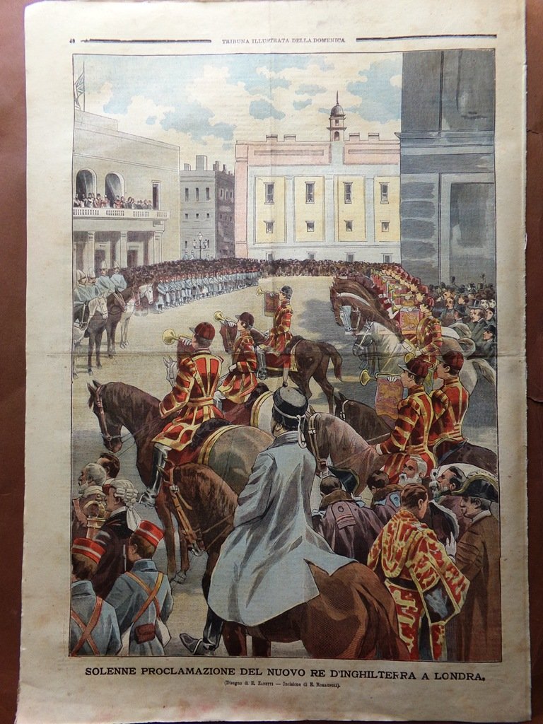 Solenne proclamazione del nuovo Re d'Inghilterra a Londra (disegno di E. Zanetti)