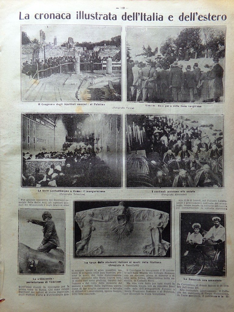 La cronaca illustrata dell'Italia e dell'estero: il congresso degli ispettori onorari al Palatino, la festa Costantiniana a Roma, la "Gioconda" portafortuna di Védrines, le nuove scuole di Savona