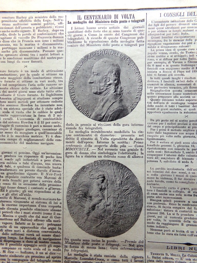 Il centenario di Volta: la medaglia del Ministero delle poste e telegrafi