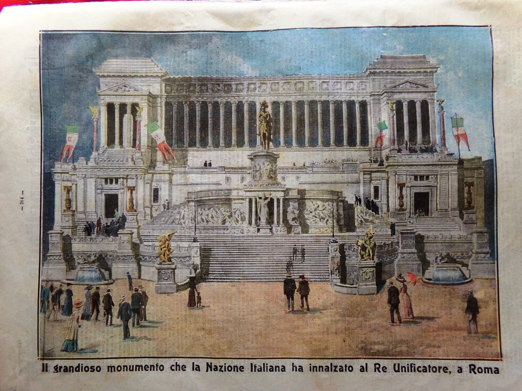 Il grandioso monumento che la Nazione Italiana ha innalzato al Re Unificatore a Roma (disegno di E. Abbo)