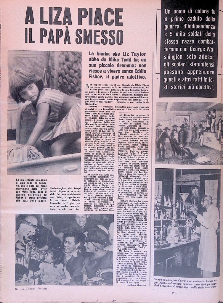 La bimba che Liz Taylor ebbe da Mike Todd ha un suo piccolo dramma: non riesce a vivere senza Effie Fisher, il padre adottivo