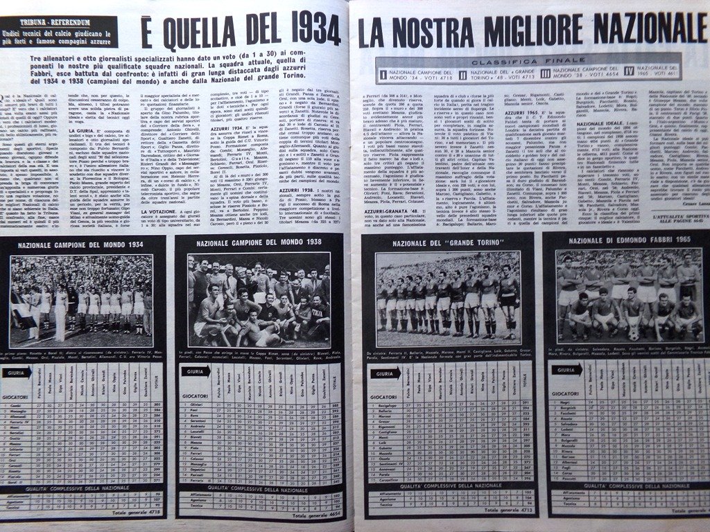 Undici tecnici del calcio giudicano le più forti e famosi compagini azzurre: è quella del 1934 la nostra migliore nazionale