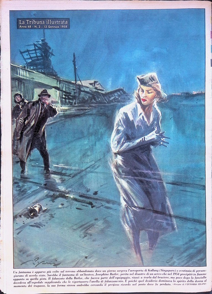 Un fantasma è apparso più volte sul terreno abbandonato dove un giorno sorgeva l'aeroporto di Kallang (Singapore) e centinaia di persone giurano di averlo visto. Sarebbe il fantasma di un'hostess, Josephine Butler, perita nel disastro di un aereo che nel 1954 precipitò in fiamme appunto su quella pista. Il fidanzato della Butler, che faceva parte dell'equipaggio, riuscì a trarla dal braciere, ma poco dopo la fanciulla decedeva all'ospedale supplicando che le riportassero l'anello di fidanzamento. E poiché quel desiderio dominava lo spirito della donna al momento del trapasso, la sua forma eterea andrebbe cercando il prezioso ricordo nel posto dove fu perduto.