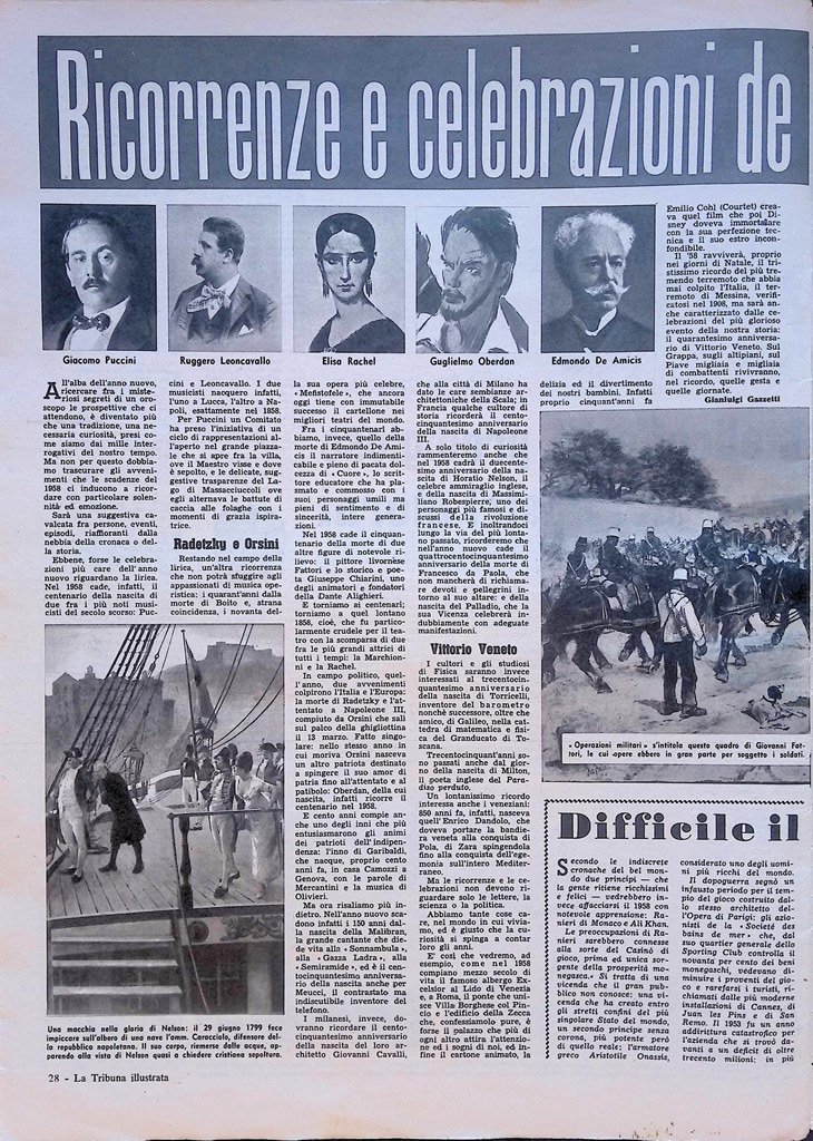 Ricorrenza e celebrazioni dell'anno nuovo: Giacomo Puccini, Ruggero Leoncavallo, Elisa Rachel, Guglielmo Oberdan, Edmondo De Amicis