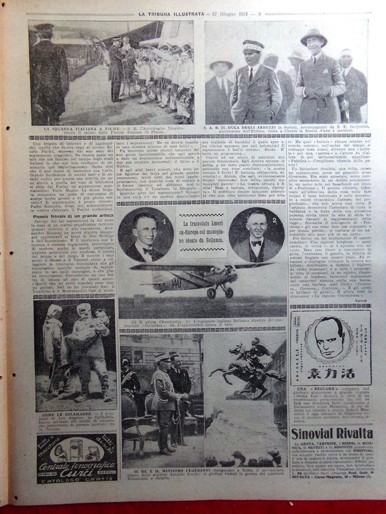 La Tribuna Illustrata 12 Giugno 1927 Villalta Bellanca Pompieri Amianto Crawford