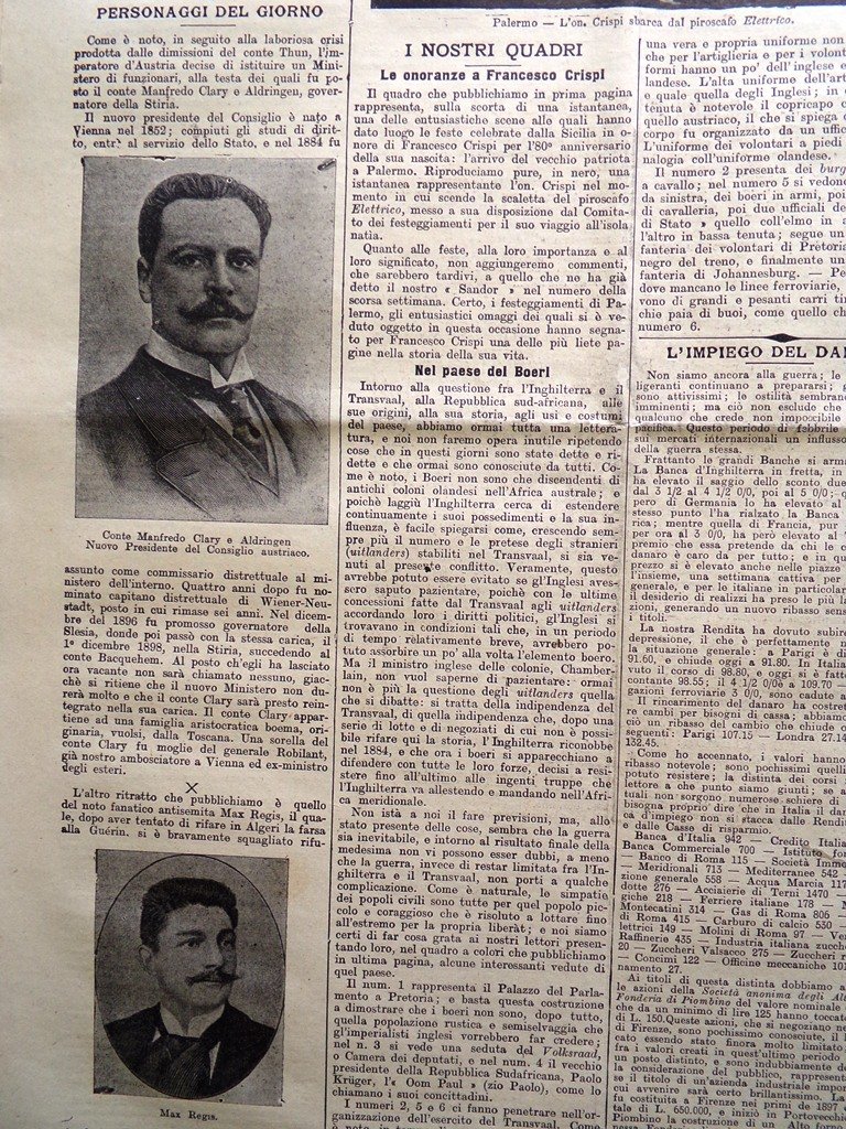 La Tribuna Illustrata 15 Ottobre 1899 Crispi Palermo Transvaal Testa di Cristo