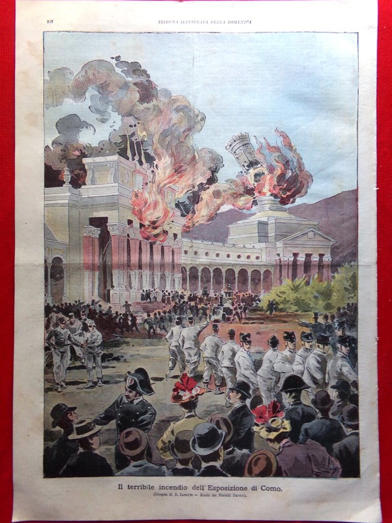 Il terribile incendio dell'esposizione di Como (disegno di E. Zanetti)