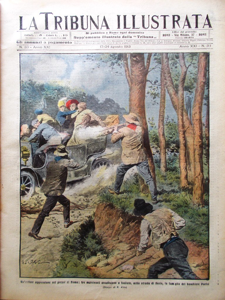Un'audace aggressione nei pressi di Roma: tre malviventi assaliscono a fucilate, nella strada di Anzio, la famiglia del banchiere Parisi (E. Abbo)