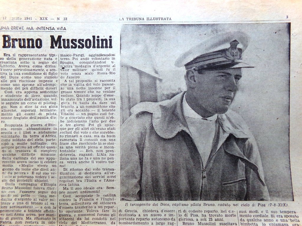 La Tribuna Illustrata 17 Agosto 1941 WW2 Morte Bruno Mussolini Ferravilla Sport