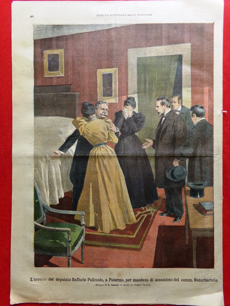 L'arresto del deputato Raffaele Palizzolo, a Palermo, per mandato di assassinio del comm. Notarbartolo (disegno di E. Zanetti)