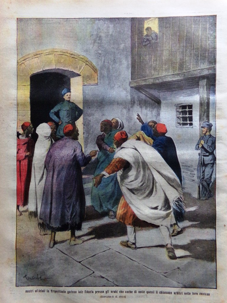 Nostri ufficiali in Tripolitania godono tale fiducia presso gli arabi che anche di notte questi li chiamano arbitri nelle loro contese (E. Abbo)