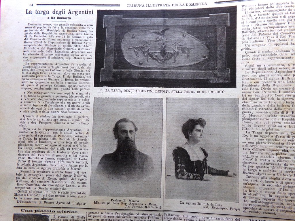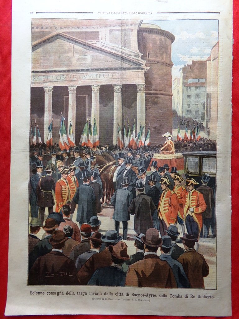 Solenne consegna della targa inviata dalla città di Buenos Aires sulla Tomba di Re Umberto (disegno di E. Zanetti)