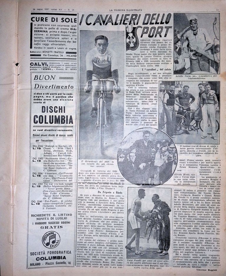 La Tribuna Illustrata 18 Luglio 1937 Museo Fede Porto Barcellona Gangsters Sport