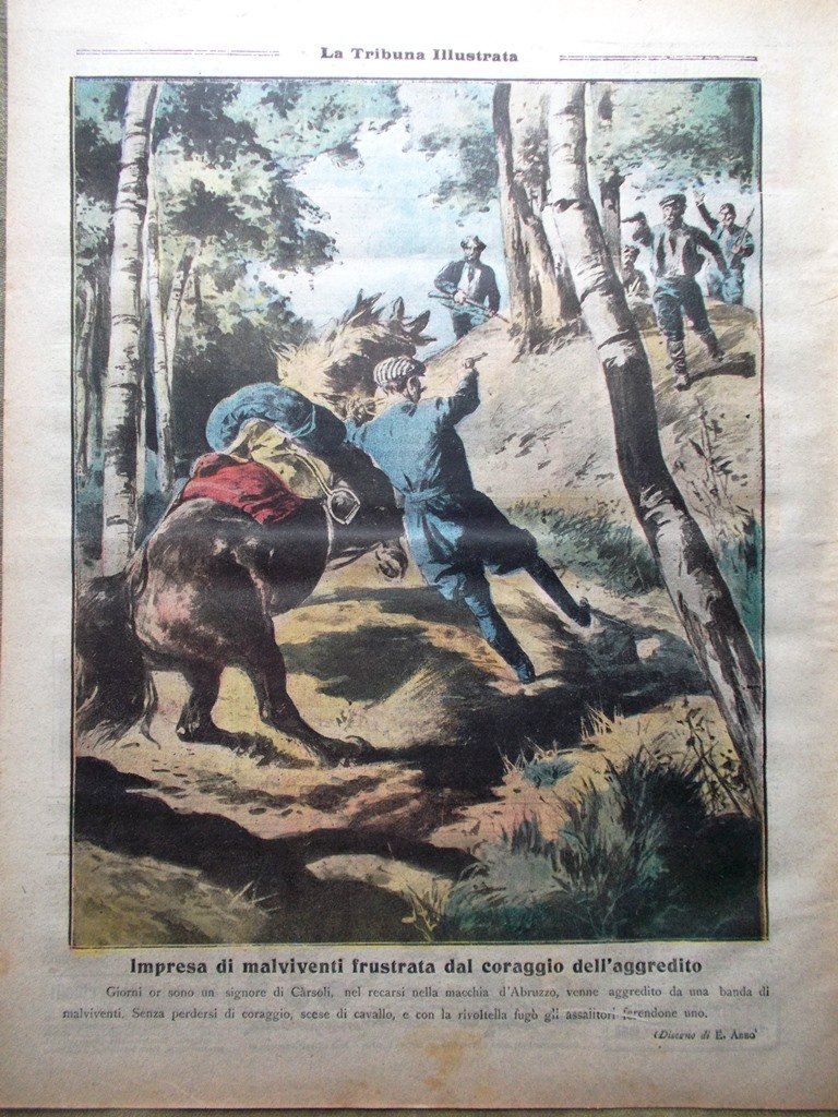 Impresa di malviventi frustrata dal coraggio dell'aggredito a Carsoli (disegno di E. Abbo)