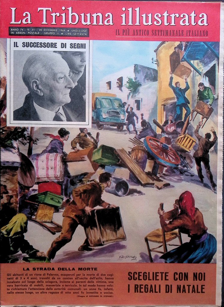 Gli abitanti di un rione di Palermo, esasperati per la morte di due cuginetti di 3 e 4 anni, travolti da un camion all'uscita dall'asilo, hanno innalzato sul luogo della sciagura, insieme ai parenti delle vittime, una vera barricata di mobili, masserizie e terriccio. In tal modo hanno voluto richiamare l'attenzione delle autorità comunali: un anno fa, infatti, nello stesso luogo, un altro ragazzo di otto anni fu investito e ucciso.
