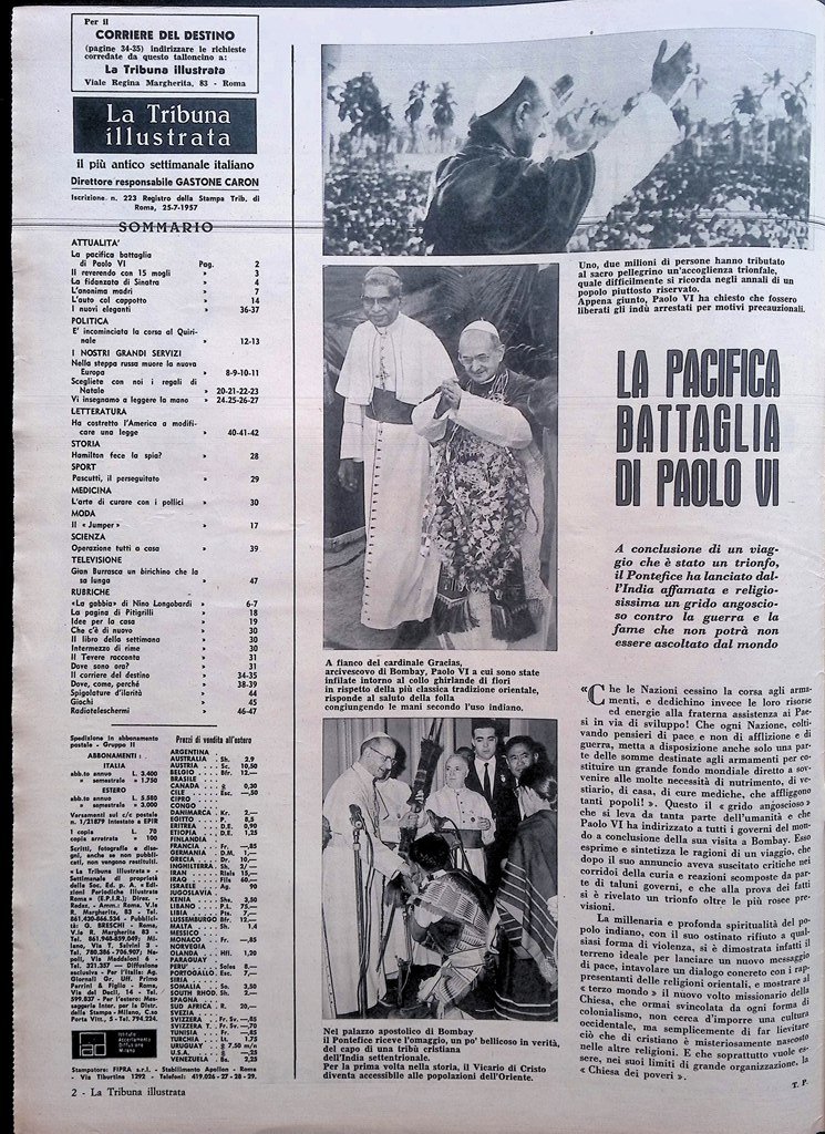 La Tribuna Illustrata 20 Dicembre 1964 Paolo VI Frank Sinatra Fanfani Merzagora