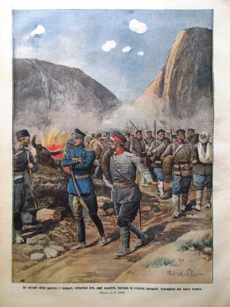 Le vicende della guerra: i bulgari, vittoriosi ieri, oggi sconfitti, battono in ritirata inseguiti, travagliati dal fuoco nemico (E. Abbo)