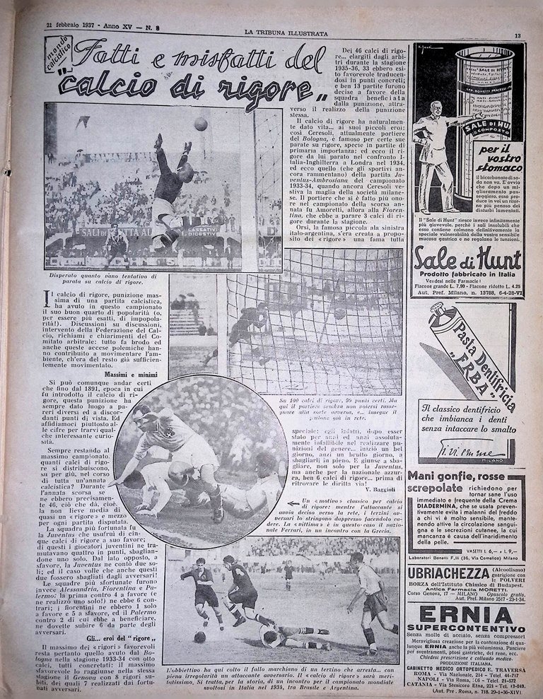 La Tribuna Illustrata 21 Febbraio 1937 Videotelefono Zorzi Calcio Rigore Bestie