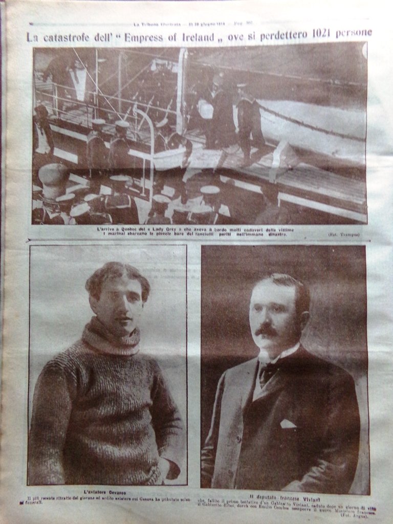 La Tribuna Illustrata 21 Giugno 1914 Empress Ireland Giulio Cesare Carcano Roma
