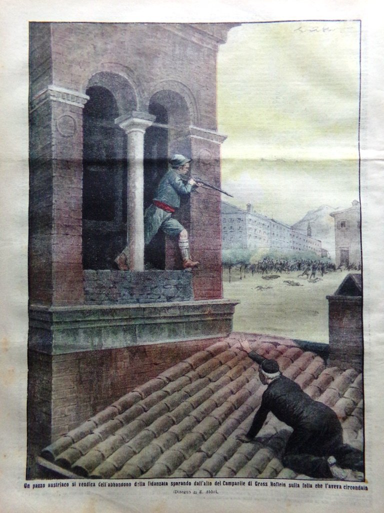 Un pazzo austriaco si vendica dell'abbandono della fidanzata sparando dall'alto del Campanile di Gross Hoffein sulla folla che l'aveva circondato (E. Abbo)