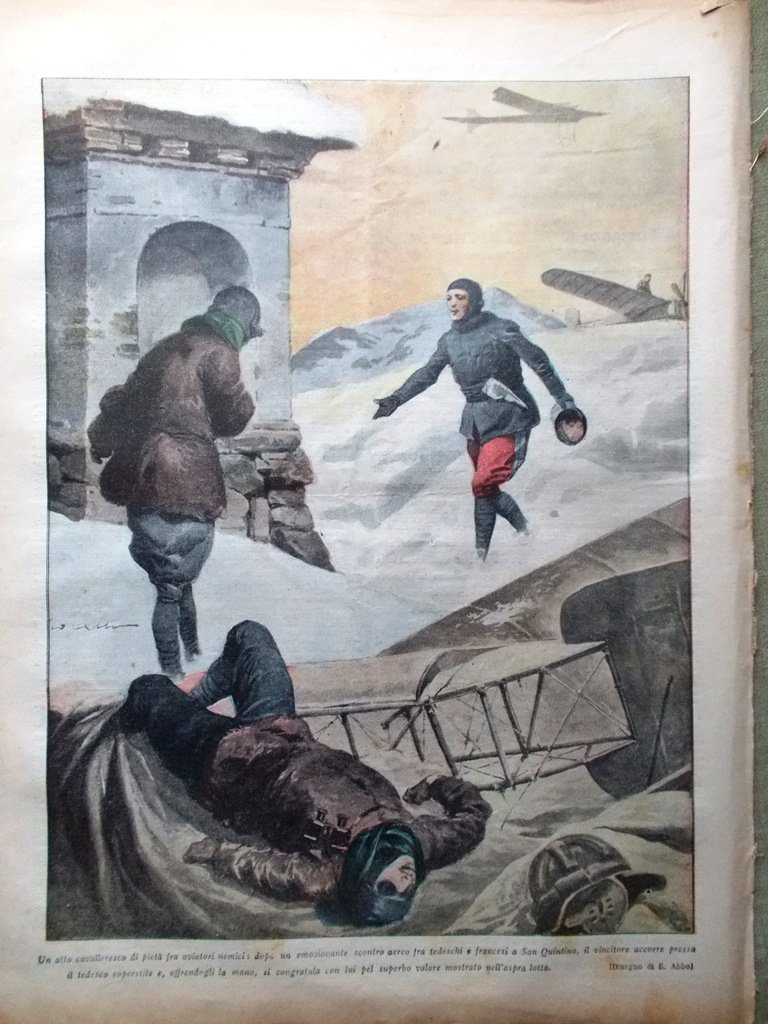 Un atto cavalleresco di pietà fra aviatori nemici (disegno di E. Abbo)