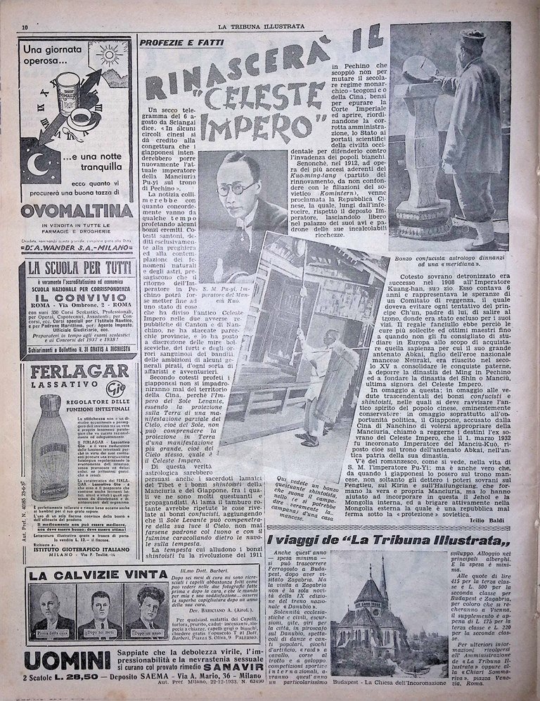 La Tribuna Illustrata 22 Agosto 1937 Celeste Impero Atomo Nuvolari Caucciù Mare