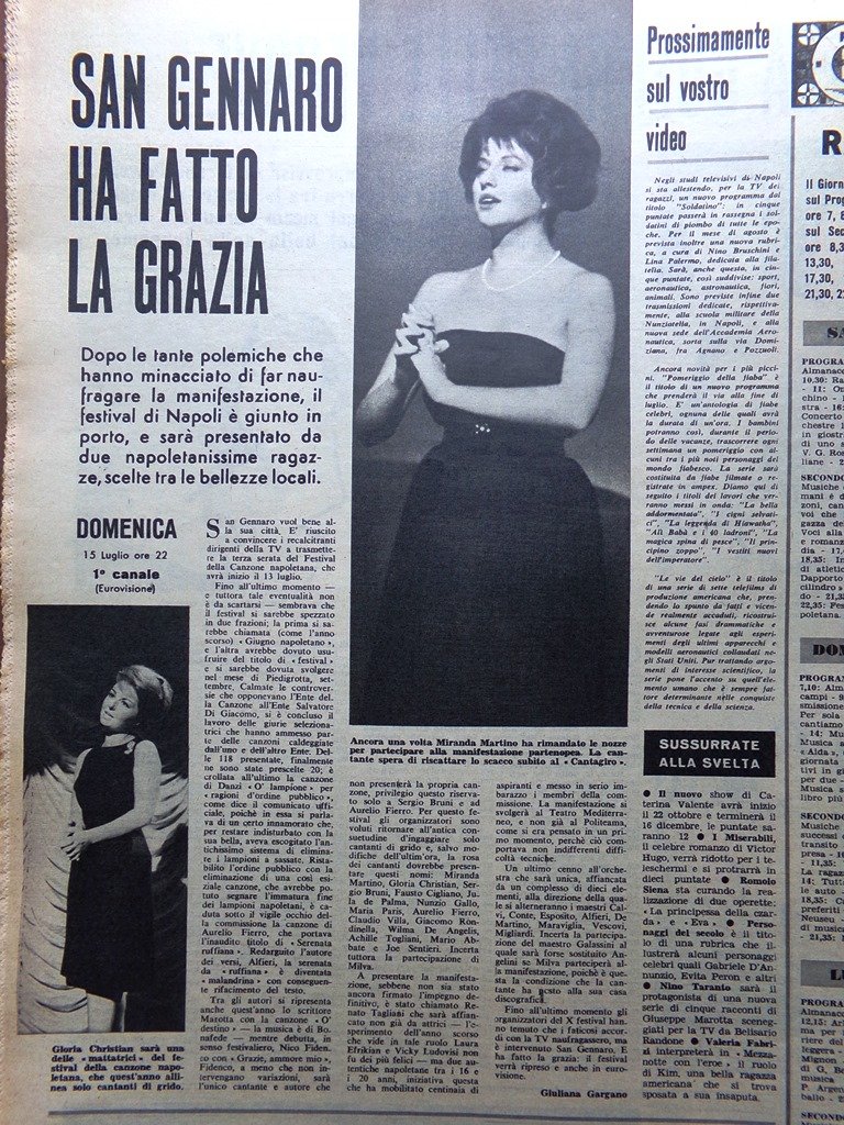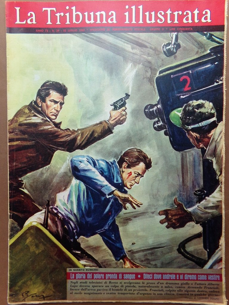 Negli studi televisivi di Roma si svolgevano le prove di un dramma giallo e l'attore Alberto Lupo doveva sparare un colpo di pistola, naturalmente a salve, contro Armando Francioli. Invece dall'arma partiva il bossolo di un proiettile. Francioli, colpito allo zigomo destro, cadeva al suolo sanguinante e veniva trasportato d'urgenza in una clinica. Guarirà in qualche giorno (disegno di Vittorio Pisani)