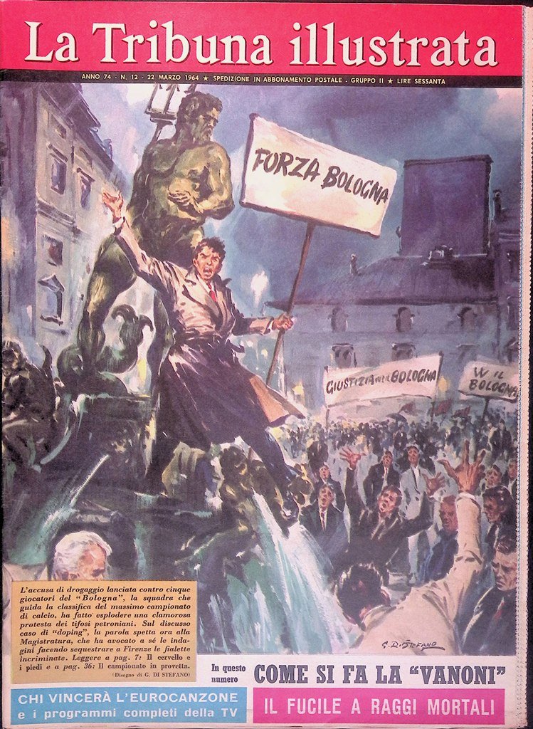 L'accusa di drogaggio lanciata contro cinque giocatori del "Bologna", la squadra che guida la classifica del massimo campionato di calcio, ha fatto esplodere una clamorosa protesta dei tifosi petroniani. Sul discusso caso di "doping", la parola spetta ora alla Magistratura, che ha avocato a sé le indagini facendo sequestrare a Firenze le fialette incriminate.
