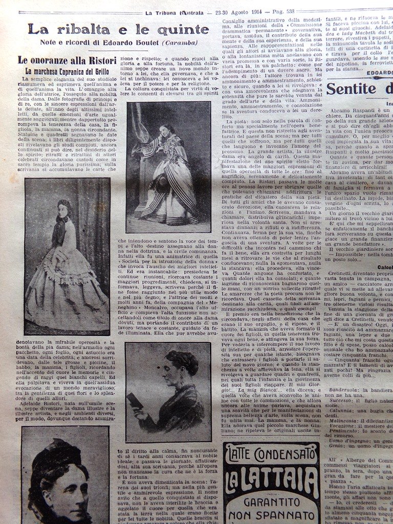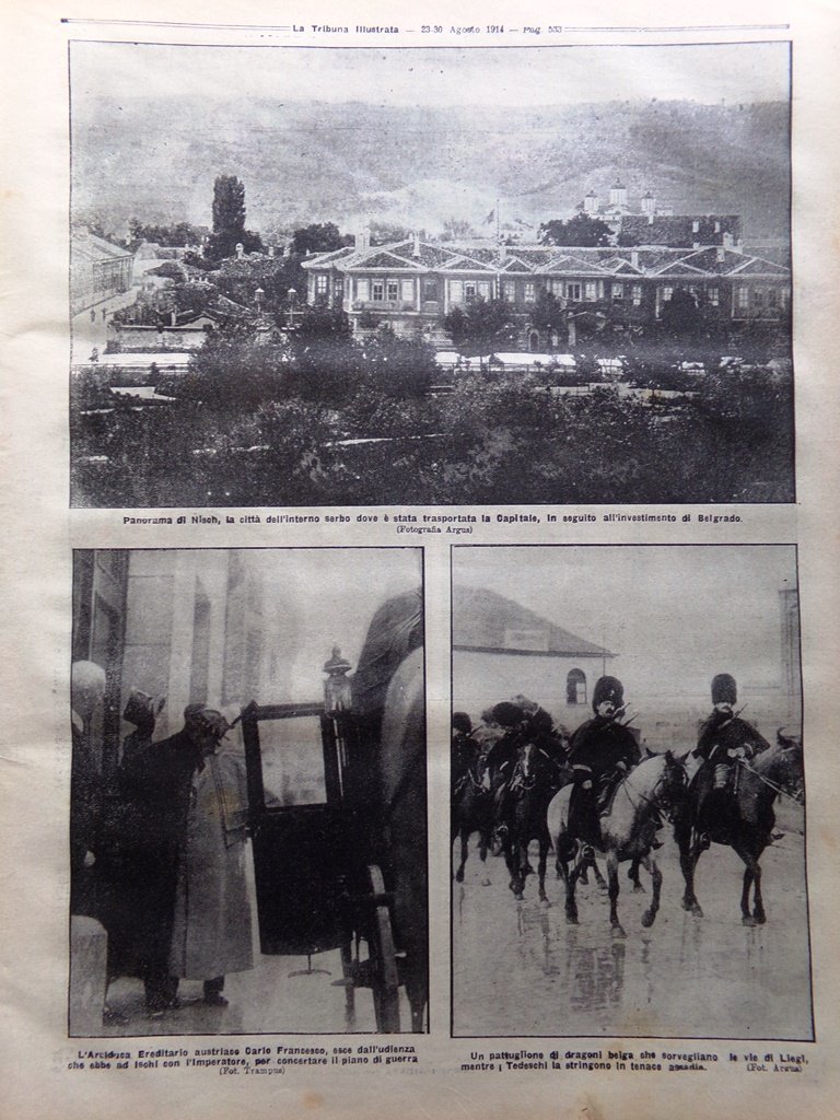 La Tribuna Illustrata 23 Agosto 1914 WW1 Niš Adelaide Ristori Belgrado Lemaitre