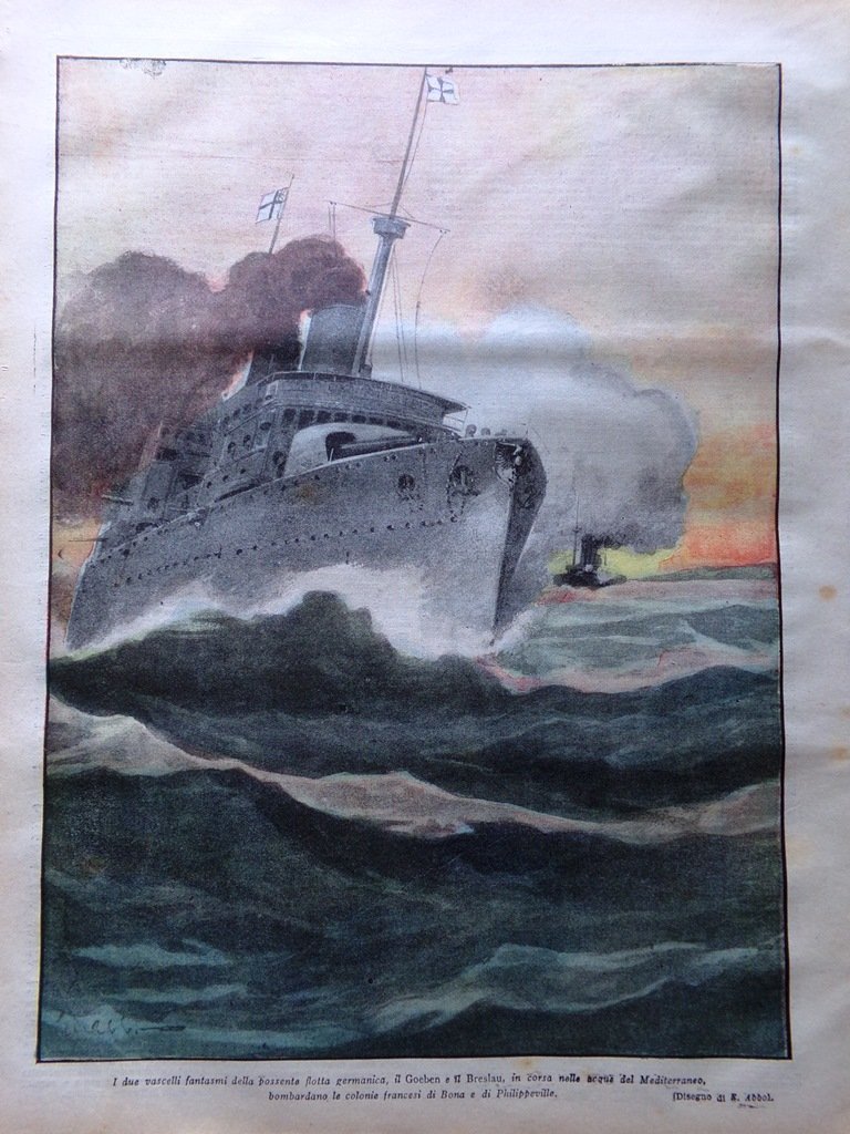 I due vascelli fantasmi della possente flotta germanica, il Goeben e il Breslau in corsa nelle acque del Mediterraneo bombardano le colonie francesi di Bona e di Philippeville (E. Abbo)