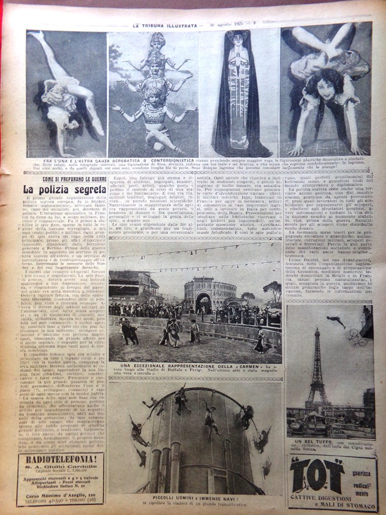 La Tribuna Illustrata 23 Agosto 1925 Xavier de Montepin Pavlova Polizia Segreta