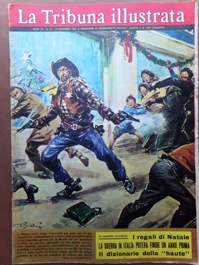 A Roma, certo Luigi Costarelli, già noto per le sue stramberie, evidentemente eccitato dall'atmosfera delle vicine festività, girava per le strade del suo quartiere in abito da cowboy sparando con due pistole scacciacani. Qualche passante, spaventatissimo, ha avvertito la polizia e l'individuo, noto come "lo sceriffo del Trionfale" è stato tratto in arresto anche perché da tempo pendeva su di lui un mandato di cattura per furto (disegno di Vittorio Pisani)