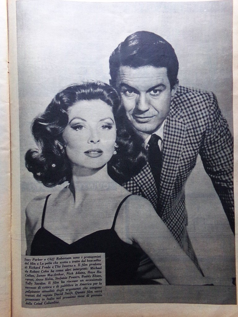 Suzy Parker e CLiff Robertson protagonisti del film "La pelle che scotta" (poster a tutta pagina)